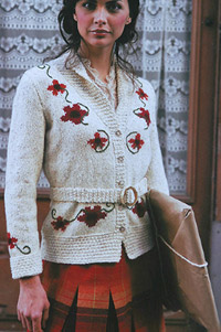 I'm also trying to find a project for my Jo Sharp DK Tweed in Cedar. I want to make some kind of Cabled Hoodie Cardigan. All the patterns I've found that seem remotely interesting are for Aran weight yarn. I'm not sure I'm good enough to do the math to convert the piece to DK weight. I like Mariah from the new Knitty because the intricate cables are really on the arms. I've had that idea in my mind for a while. Will it be really hard to convert it? Or should I give up and look for something in the same yarn weight? I like this Debbie Bliss pattern, but again, it's calling for Aran weight. I probably don't have enough yarn to do it anyway. I have 20 balls of the Cedar. I know I don't have enough to do this, also a Debbie Bliss pattern. (Great job Shannon!) Of course, this one's in the right yarn weight. I guess I could try to find some more yarn. I'd probably only need about five or so. It's times like these I wish I was a designer extraordinare so I could make myself a Shazam or Lovie like Bonne Marie.